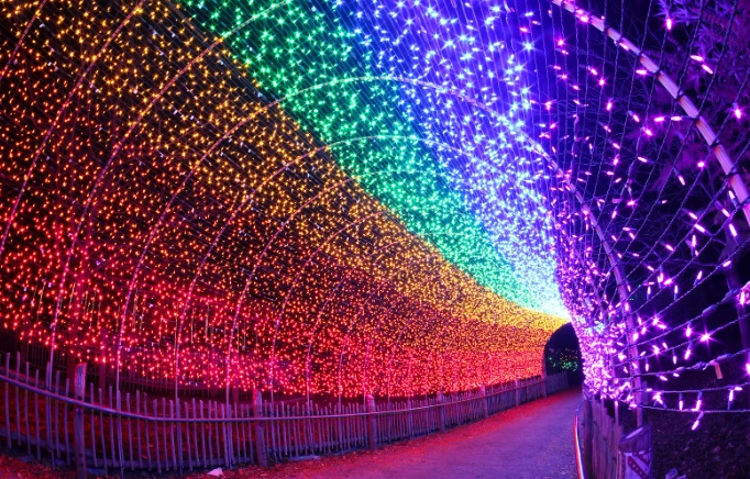Down in Cincinnati, the PNC Festival of Lights has this rainbow tunnel kids run through over and over.